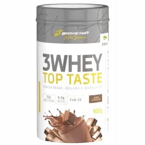 O novo 3 Whey Top Taste é composto por uma fórmula superior livre de Xenobióticos (substâncias estranhas ao organismo) que foi desenvolvida com as mais nobres proteínas de alta concentração, absorção e biodisponibilidade: Proteína Isolada, Hidrolisada e Concentrada. Disponibilizando em apenas uma dose, 32 gramas de proteína. Além disso, traz como ingrediente especial a Coenzima Q10, com potente ação antioxidante que reduzirá o risco de lesões musculares. Também possui vitaminas e minerais que auxiliarão na absorção dos nutrientes. Garanta já o seu 3Whey Top Taste e descubra a verdadeira evolução do Whey!